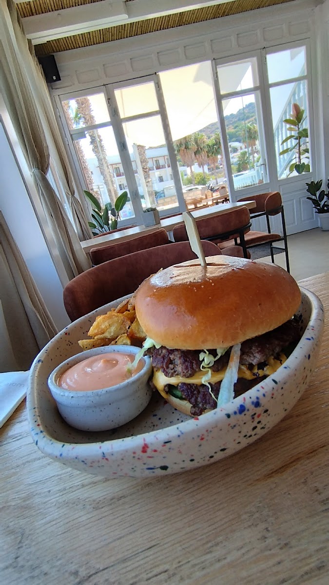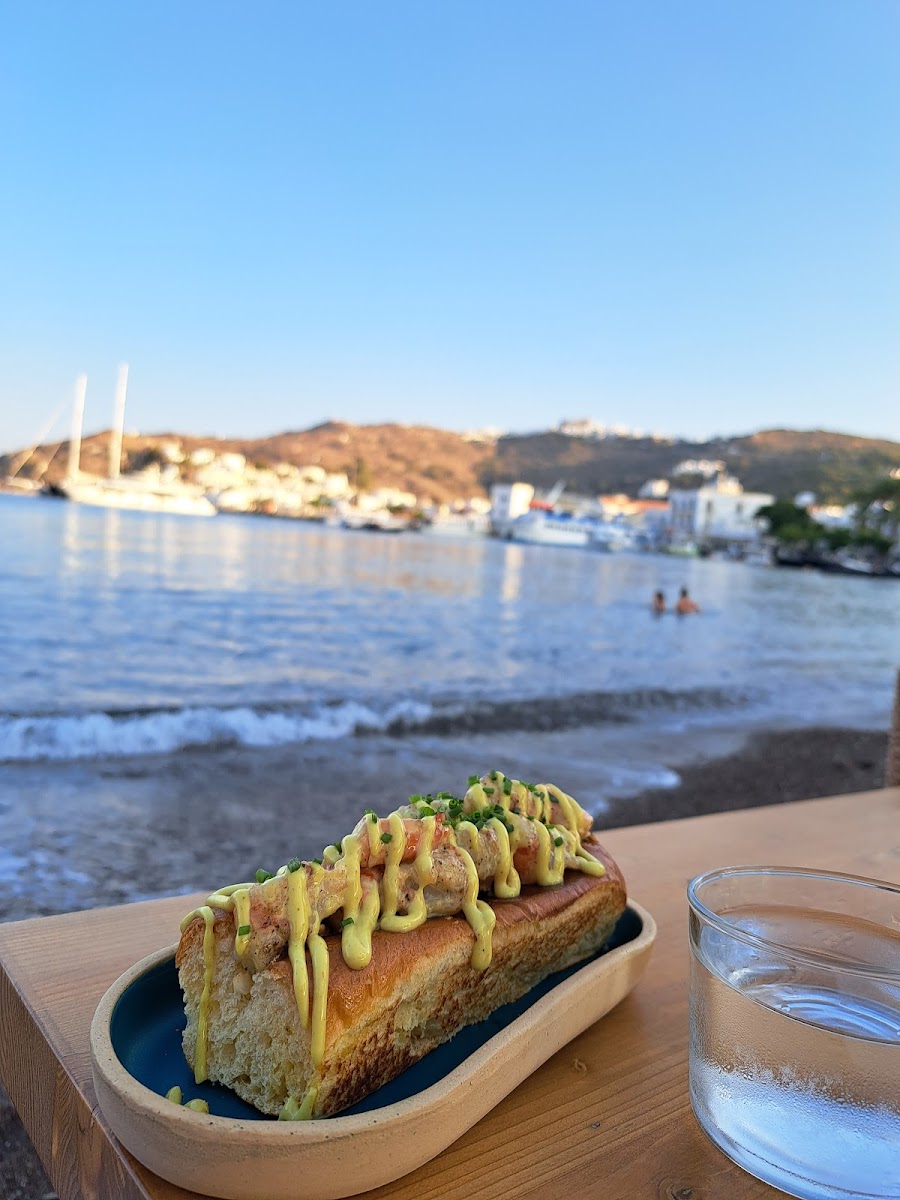 The location right at the beachfront adds a distinctive atmosphere—imagine sipping an unsweetened hibiscus green tea or a matcha latte while the gentle sounds of waves mix with soft background music. The outdoor seating is ideal on sunny days, making it a comfortable place to watch the world go by or catch up on a quiet moment in Patmos.