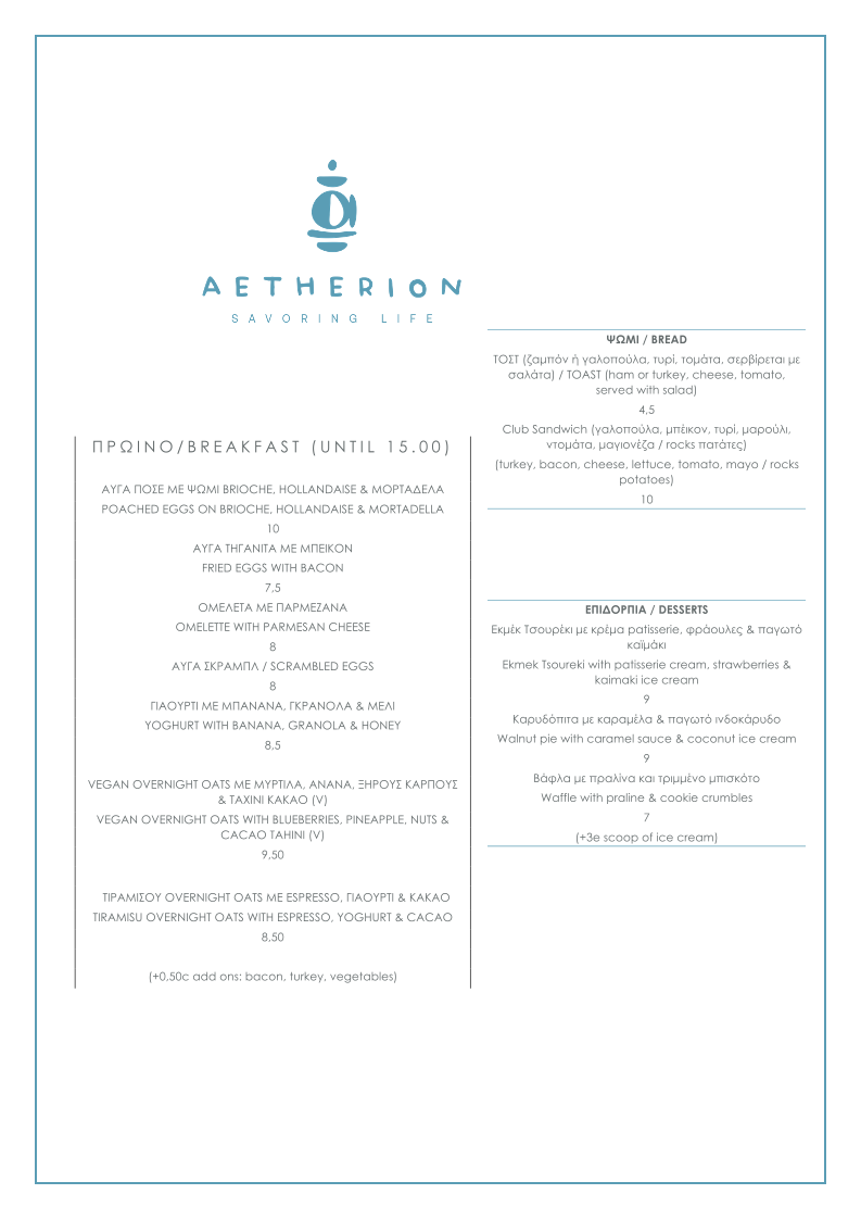The menu at Aetherion offers a variety of options suited for different times of the day, including breakfast, brunch, light meals, and snacks. Visitors can expect a range of coffee and tea beverages alongside food items that cater to casual dining and quick orders.